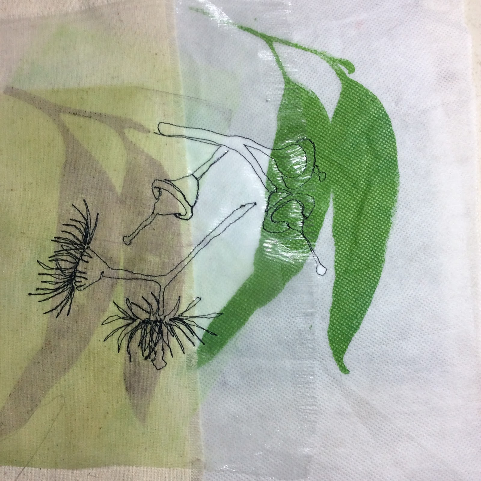 Earlier in the year, I did a lot of printing on fabric and sheers of gum leaves and I have finally gotten around to doing something with them!